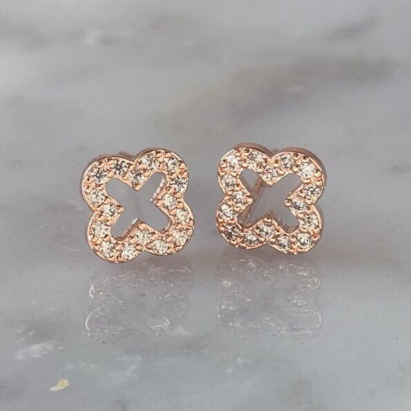 美しいピンクゴールドメッキにキュービックジルコニアストーンを敷きつめた可憐なクローバー。デイリーからお呼ばれコーデまで幅広く着用でき、シーズンレスで楽しめます♡ショートサイズでつけ心地も抜群♡ニッケルフリーの素材を採用しているため、敏感肌の方にも安心してご使用いただけます。