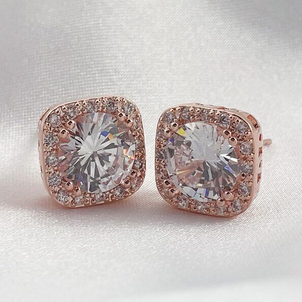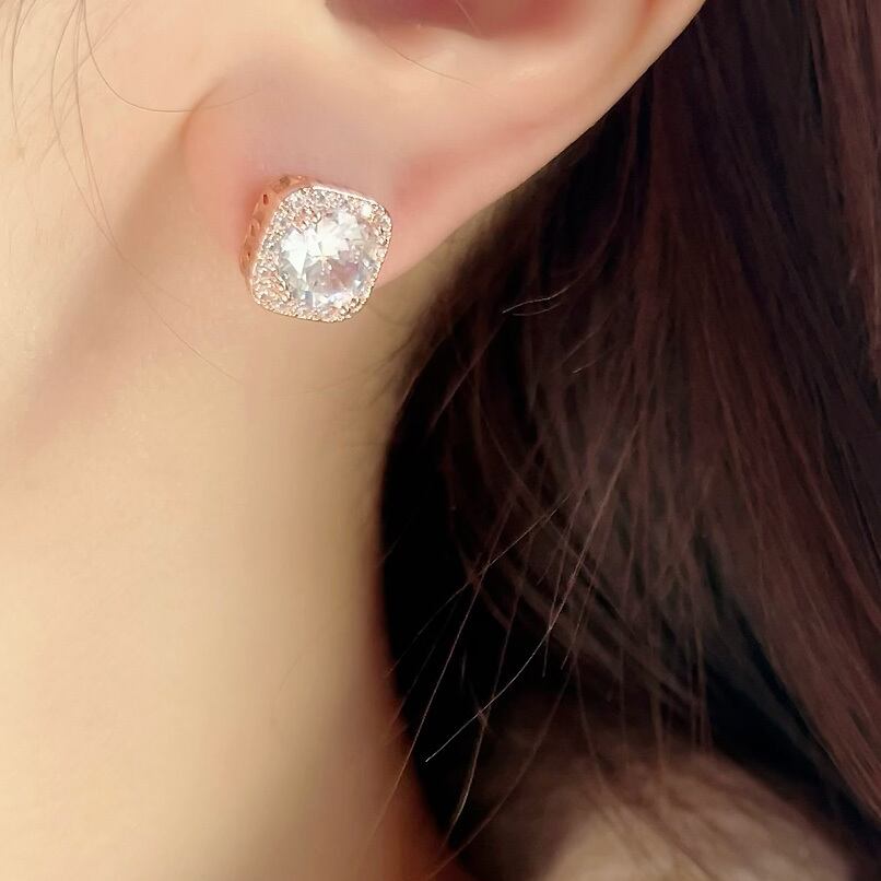 美しいピンクゴールドメッキに、キュービックジルコニアストーンを敷きつめた小ぶりながら洗練された印象を放つスクエアモチーフが印象的♡エレガントで可憐な雰囲気に仕上げます。デイリーにも扱いやすく、お洋服を選ばない万能アイテム♡ニッケルフリーの素材を採用しているため、敏感肌の方にも安心してご使用いただけます。